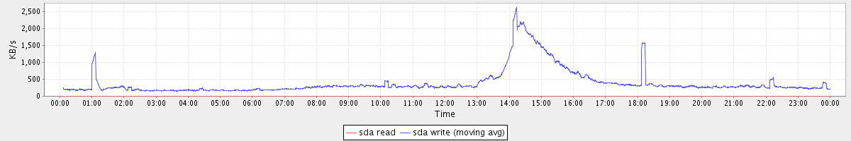 avg(sda read) = 0.00 avg(sda write) = 54.02