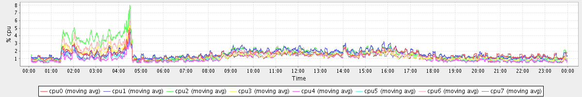 avg(cpu0) = 0.00 avg(cpu1) = 0.00 avg(cpu2) = 0.00 avg(cpu3) = 0.00 avg(cpu4) = 0.00 avg(cpu5) = 0.00 avg(cpu6) = 0.00 avg(cpu7) = 0.00