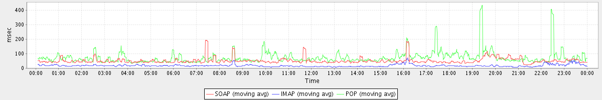 avg(IMAP) = 16.80 avg(IMAP SSL) = 1147.15 avg(POP) = 0.05 avg(POP SSL) = 2.28
