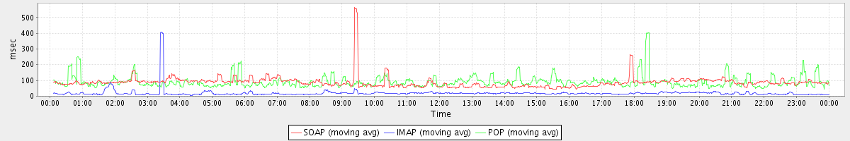 avg(IMAP) = 19.06 avg(IMAP SSL) = 1051.69 avg(POP) = 0.03 avg(POP SSL) = 4.12