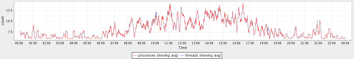 avg(processes) = 8.12 avg(threads) = 8.13