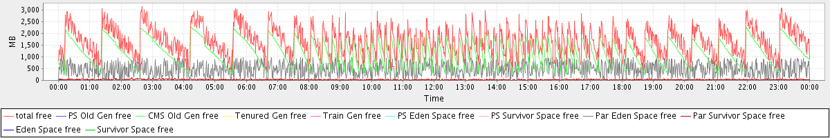 avg(total free) = 1686.32 avg(PS Old Gen free) = 0.00 avg(CMS Old Gen free) = 1172.59 avg(Tenured Gen free) = 0.00 avg(Train Gen free) = 0.00 avg(PS Eden Space free) = 0.00 avg(PS Survivor Space free) = 0.00 avg(Par Eden Space free) = 483.34 avg(Par Survivor Space free) = 30.40 avg(Eden Space free) = 0.00 avg(Survivor Space free) = 0.00