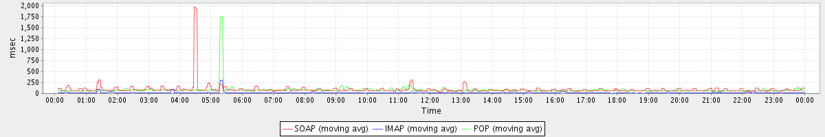 avg(IMAP) = 18.30 avg(IMAP SSL) = 787.39 avg(POP) = 0.04 avg(POP SSL) = 2.31