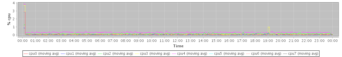 avg(cpu0) = 0.04 avg(cpu1) = 0.02 avg(cpu2) = 0.14 avg(cpu3) = 0.09 avg(cpu4) = 0.31 avg(cpu5) = 0.02 avg(cpu6) = 0.02 avg(cpu7) = 0.03