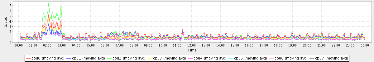 avg(cpu0) = 0.08 avg(cpu1) = 0.01 avg(cpu2) = 0.03 avg(cpu3) = 0.00 avg(cpu4) = 0.00 avg(cpu5) = 0.00 avg(cpu6) = 0.02 avg(cpu7) = 0.00