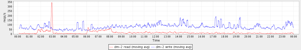 avg(dm-2 read) = 16.70 avg(dm-2 write) = 80.37