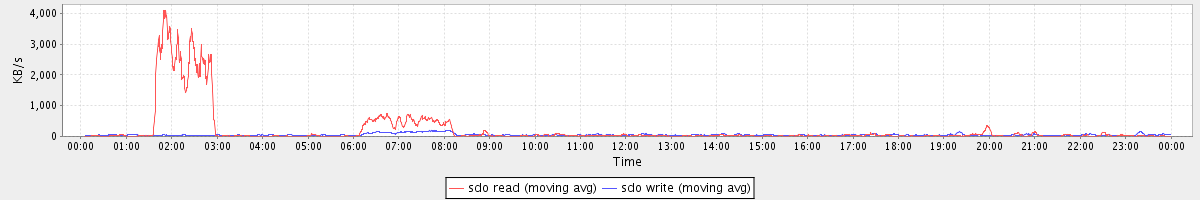 avg(sda read) = 0.74 avg(sda write) = 3.41