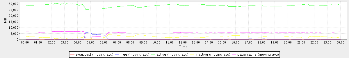 avg(swapped) = 0.25 avg(free) = 540.45 avg(active) = 28606.03 avg(inactive) = 2278.75 avg(page cache) = 5862.69