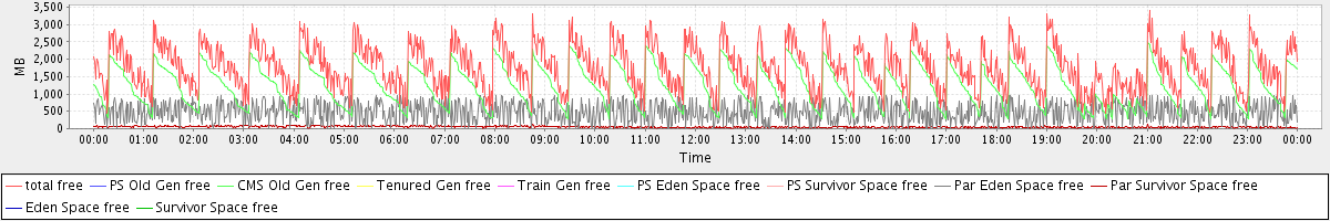 avg(total free) = 1778.90 avg(PS Old Gen free) = 0.00 avg(CMS Old Gen free) = 1246.85 avg(Tenured Gen free) = 0.00 avg(Train Gen free) = 0.00 avg(PS Eden Space free) = 0.00 avg(PS Survivor Space free) = 0.00 avg(Par Eden Space free) = 480.34 avg(Par Survivor Space free) = 51.71 avg(Eden Space free) = 0.00 avg(Survivor Space free) = 0.00