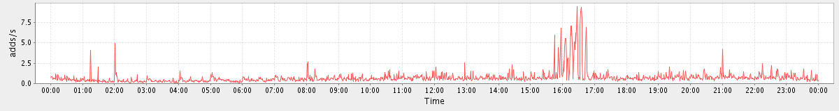 max(MsgActionRequest.move) = 353.00 max(SearchRequest) = 1095.00 max(MsgActionRequest.delete) = 3160.00 max(GetInfoRequest) = 1081.00 max(AddMsgRequest) = 510.00 max(GetDomainInfoRequest) = 1214.00 max(GetFolderRequest) = 277.00 max(ItemActionRequest.delete) = 935.00 max(SyncRequest) = 432.00 max(AuthRequest) = 1214.00
