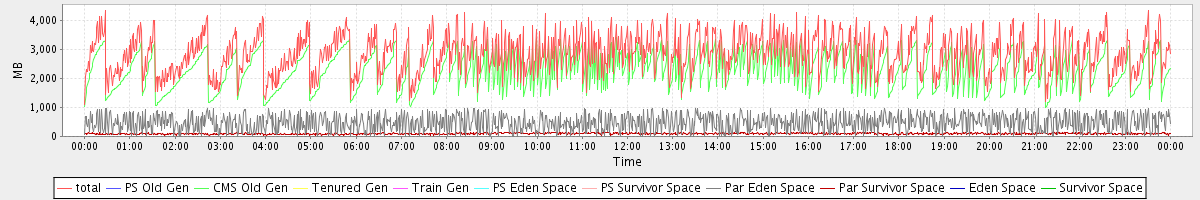 avg(total) = 2849.89 avg(PS Old Gen) = 0.00 avg(CMS Old Gen) = 2281.86 avg(Tenured Gen) = 0.00 avg(Train Gen) = 0.00 avg(PS Eden Space) = 0.00 avg(PS Survivor Space) = 0.00 avg(Par Eden Space) = 474.59 avg(Par Survivor Space) = 93.44 avg(Eden Space) = 0.00 avg(Survivor Space) = 0.00