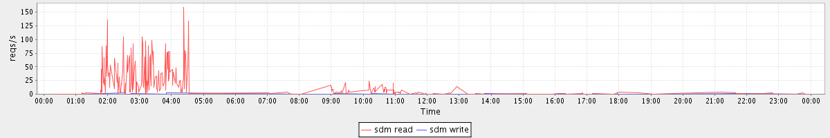 avg(sda read) = 1.63 avg(sda write) = 3.96