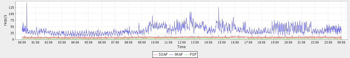 Host zm04.stanford.edu: Mailboxd: Request Rate by Client Protocol