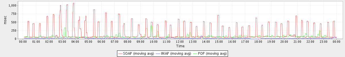 avg(IMAP) = 17.77 avg(IMAP SSL) = 882.00 avg(POP) = 0.00 avg(POP SSL) = 2.34