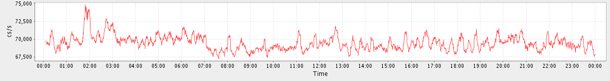 avg(user) = 22.79 avg(sys) = 5.93 avg(idle) = 68.77 avg(iowait) = 2.19 avg(nice) = 0.00 avg(irq) = 0.01 avg(softirq) = 0.29