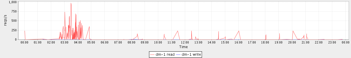 avg(dm-1 read) = 392.77 avg(dm-1 write) = 0.06