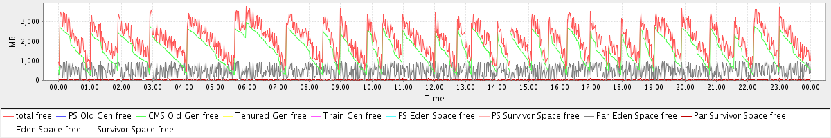 avg(total free) = 2089.43 avg(PS Old Gen free) = 0.00 avg(CMS Old Gen free) = 1563.59 avg(Tenured Gen free) = 0.00 avg(Train Gen free) = 0.00 avg(PS Eden Space free) = 0.00 avg(PS Survivor Space free) = 0.00 avg(Par Eden Space free) = 489.88 avg(Par Survivor Space free) = 35.96 avg(Eden Space free) = 0.00 avg(Survivor Space free) = 0.00