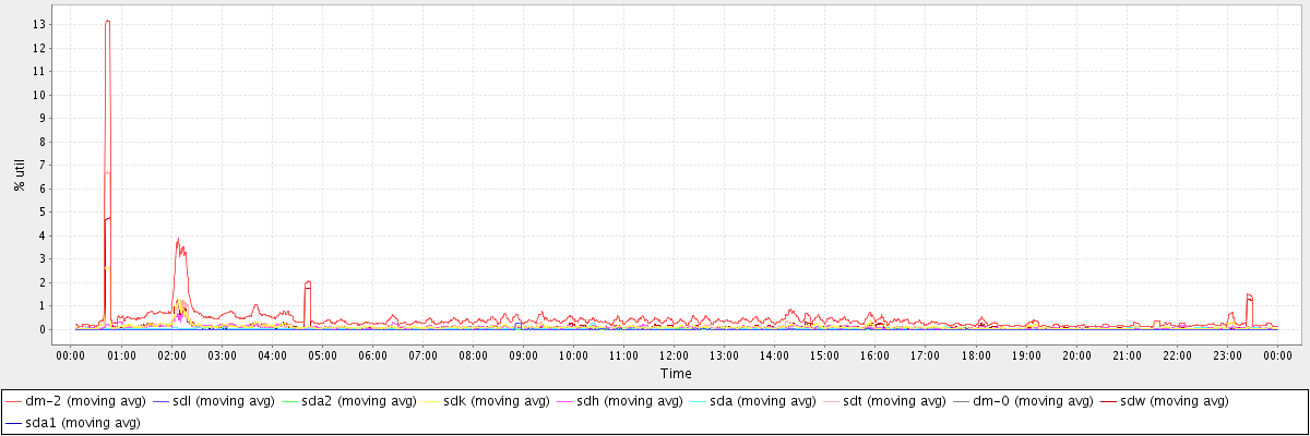 avg(dm-2) = 0.47 avg(sdl) = 0.00 avg(sda2) = 0.00 avg(sdk) = 0.12 avg(sdh) = 0.09 avg(sda) = 0.05 avg(sdt) = 0.13 avg(dm-0) = 0.01 avg(sdw) = 0.13 avg(sda1) = 0.04