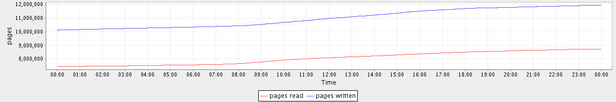 avg(pages read) = 8055293.40 avg(pages written) = 11000506.88