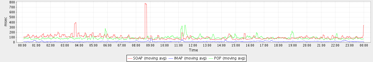 Host zm01.stanford.edu: Mailboxd: Response Time by Client Protocol