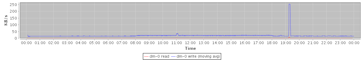 avg(dm-0 read) = 0.02 avg(dm-0 write) = 19.88
