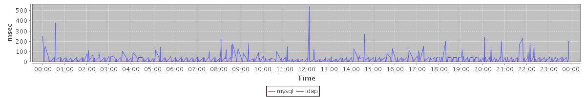 avg(mysql) = 0.21 avg(ldap) = 11.16