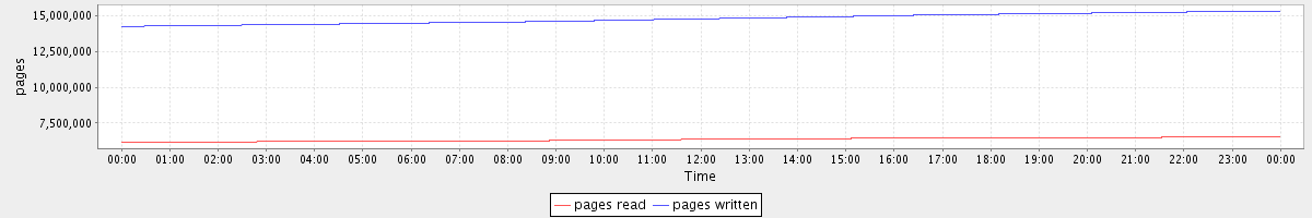 avg(pages read) = 6351741.93 avg(pages written) = 14810346.57