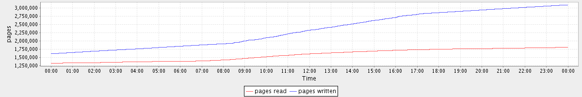 avg(pages read) = 1574964.08 avg(pages written) = 2337158.33