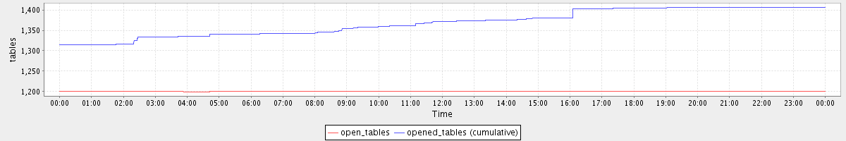 avg(open_tables) = 1199.97 avg(opened_tables (cumulative)) = 1367.90