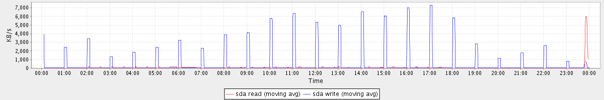 avg(sda read) = 24.39 avg(sda write) = 503.20