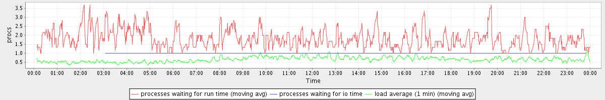 avg(processes waiting for run time) = 0.80 avg(processes waiting for io time) = 0.00 avg(load average (1 min)) = 0.64