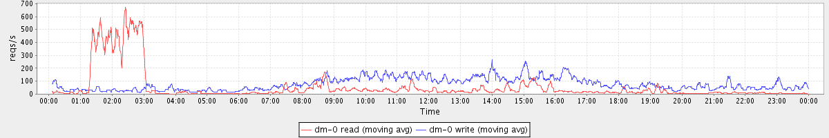 avg(dm-0 read) = 936.36 avg(dm-0 write) = 309.51
