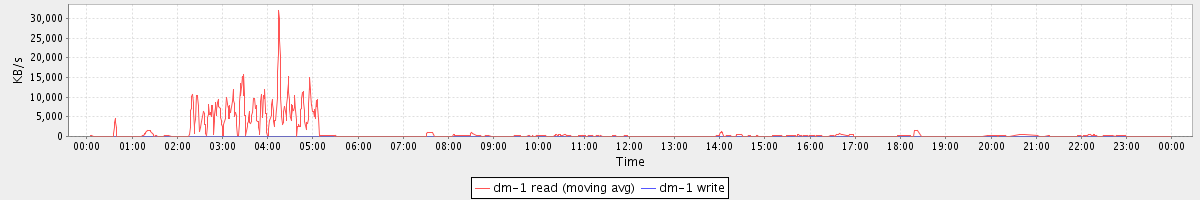 avg(dm-1 read) = 18.36 avg(dm-1 write) = 0.06