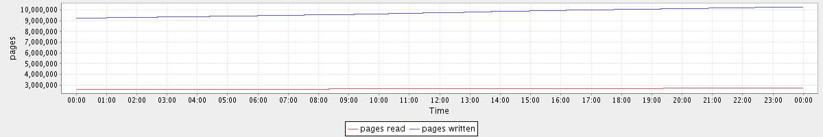 avg(pages read) = 2656029.31 avg(pages written) = 9751744.77