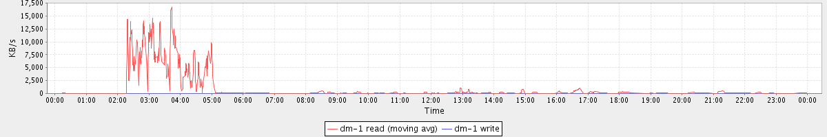 avg(dm-1 read) = 15.10 avg(dm-1 write) = 0.05