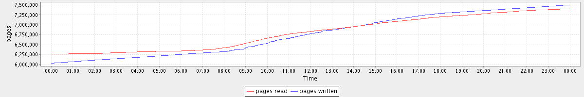 avg(pages read) = 6797219.58 avg(pages written) = 6761282.76