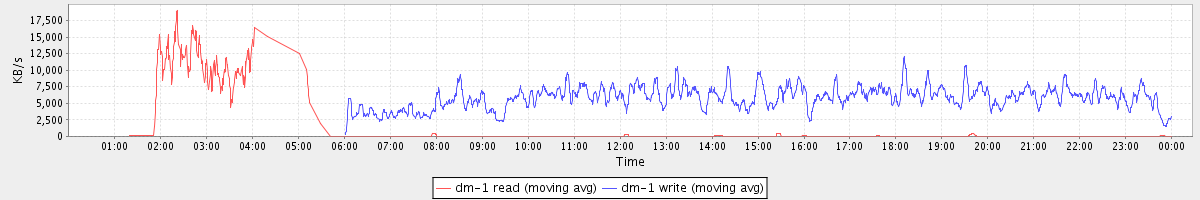 avg(dm-1 read) = 20.10 avg(dm-1 write) = 1098.55