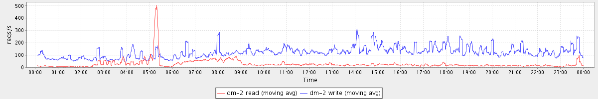 avg(dm-2 read) = 29.47 avg(dm-2 write) = 123.78