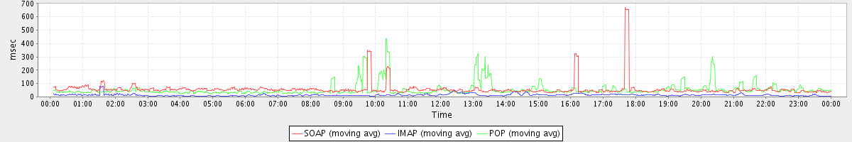 Host zm04.stanford.edu: Mailboxd: Response Time by Client Protocol