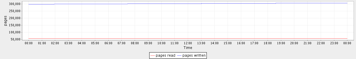 avg(pages read) = 56313.00 avg(pages written) = 303373.62