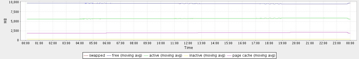 avg(swapped) = 0.00 avg(free) = 9667.51 avg(active) = 5706.90 avg(inactive) = 304.06 avg(page cache) = 1965.60