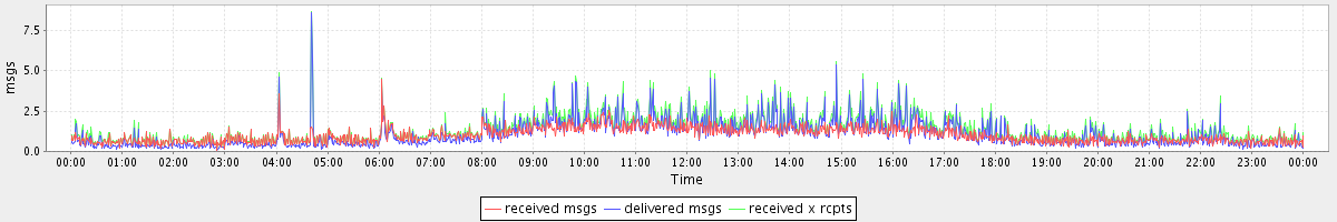 avg(received msgs) = 1.01 avg(delivered msgs) = 1.05 avg(received x rcpts) = 1.35