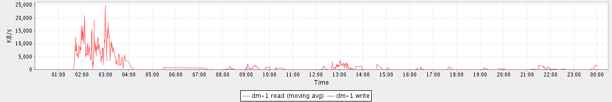 avg(dm-1 read) = 594.76 avg(dm-1 write) = 0.04