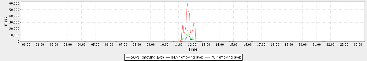 Host zm08.stanford.edu: Mailboxd: Response Time by Client Protocol