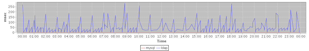 avg(mysql) = 0.23 avg(ldap) = 7.62