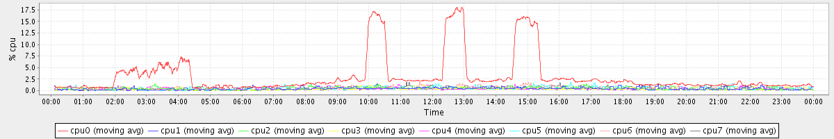 avg(cpu0) = 3.08 avg(cpu1) = 0.44 avg(cpu2) = 0.49 avg(cpu3) = 0.33 avg(cpu4) = 0.36 avg(cpu5) = 0.40 avg(cpu6) = 0.45 avg(cpu7) = 0.35