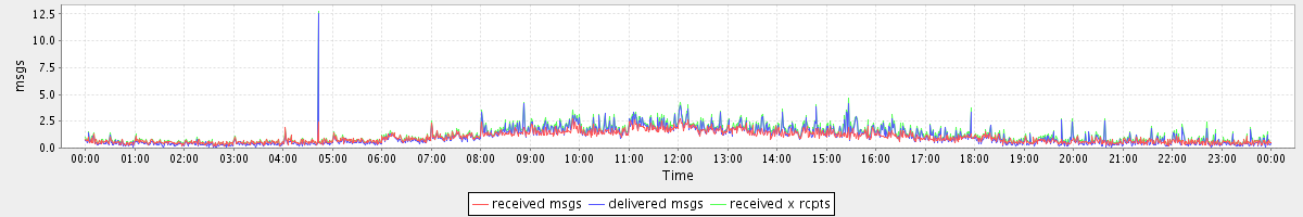 avg(received msgs) = 0.99 avg(delivered msgs) = 1.05 avg(received x rcpts) = 1.25