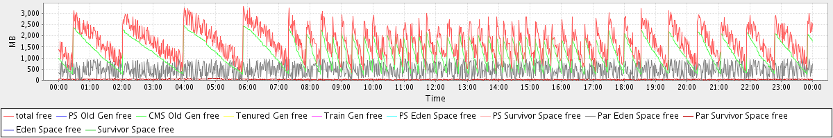 avg(total free) = 1724.03 avg(PS Old Gen free) = 0.00 avg(CMS Old Gen free) = 1213.81 avg(Tenured Gen free) = 0.00 avg(Train Gen free) = 0.00 avg(PS Eden Space free) = 0.00 avg(PS Survivor Space free) = 0.00 avg(Par Eden Space free) = 474.15 avg(Par Survivor Space free) = 36.08 avg(Eden Space free) = 0.00 avg(Survivor Space free) = 0.00