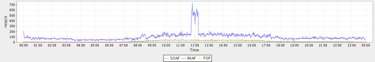 Host zm05.stanford.edu: Mailboxd: Request Rate by Client Protocol