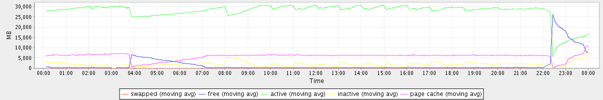 avg(swapped) = 0.23 avg(free) = 1789.84 avg(active) = 27720.01 avg(inactive) = 1993.06 avg(page cache) = 5804.13